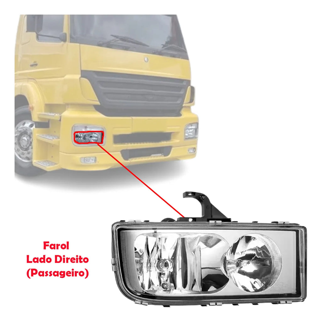 Farol Principal Dianteiro do Lado Direito (Lado Passageiro) Compatível com os Caminhões Mercedes-Benz Axor de Cabine Alta e Baixa Modelos de 2005 Até 2013