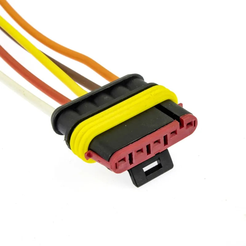 Chicote elétrico de 5 vias desenvolvido especificamente para a conexão de lanternas traseiras em LED de implementos rodoviários. Fabricado com condutores de alta qualidade e isolamento emborrachado, o componente oferece vedação contra umidade e poeira, garantindo a alimentação estável das funções de sinalização e evitando o mau contato causado por vibrações.