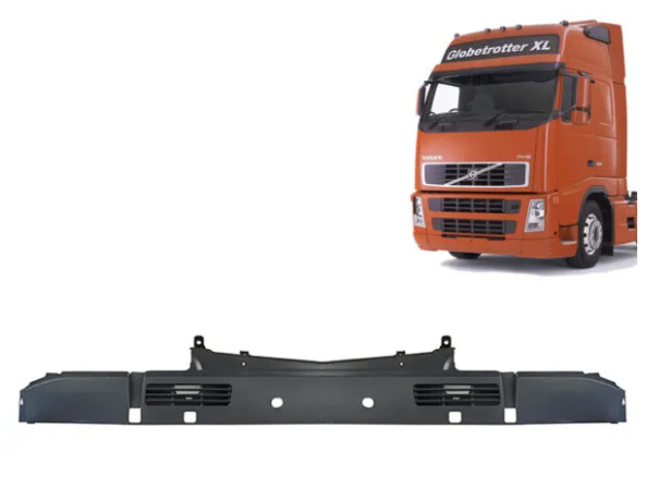 Acabamento do Parabrisa, conhecido popularmente como Churrasqueira, para o camião Volvo FH (modelos a partir de 2004), é uma peça técnica instalada na base do vidro frontal para realizar o escoamento eficiente da água da chuva e proteger o sistema de ventilação da cabine contra detritos. Fabricado em plástico de engenharia com tratamento contra raios ultravioleta, este componente evita o ressecamento precoce e mantém a vedação correta da parte inferior do vidro, garantindo a integridade dos motores do limpador e um acabamento estético original que segue as linhas aerodinâmicas da cabine do camião.